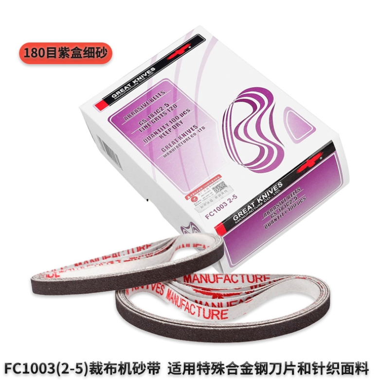 細砂(紫盒): FC1003 2-5 適用于各類合金鋼,特殊鋼材質(zhì)刀片 適合面料:針織,絲綢,羽絨類等高檔面料。